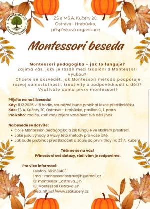 Zveme rodiče na druhou Montessori besedu, která proběhne 11. prosince od 15:00 do 16:30. Připravte si prosím dotazy, na které byste rádi znali odpověď.