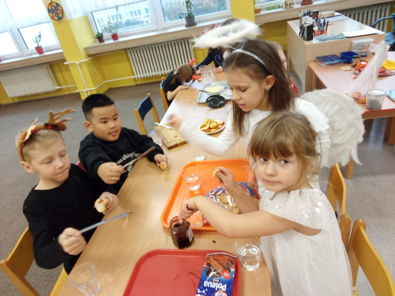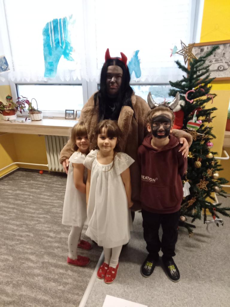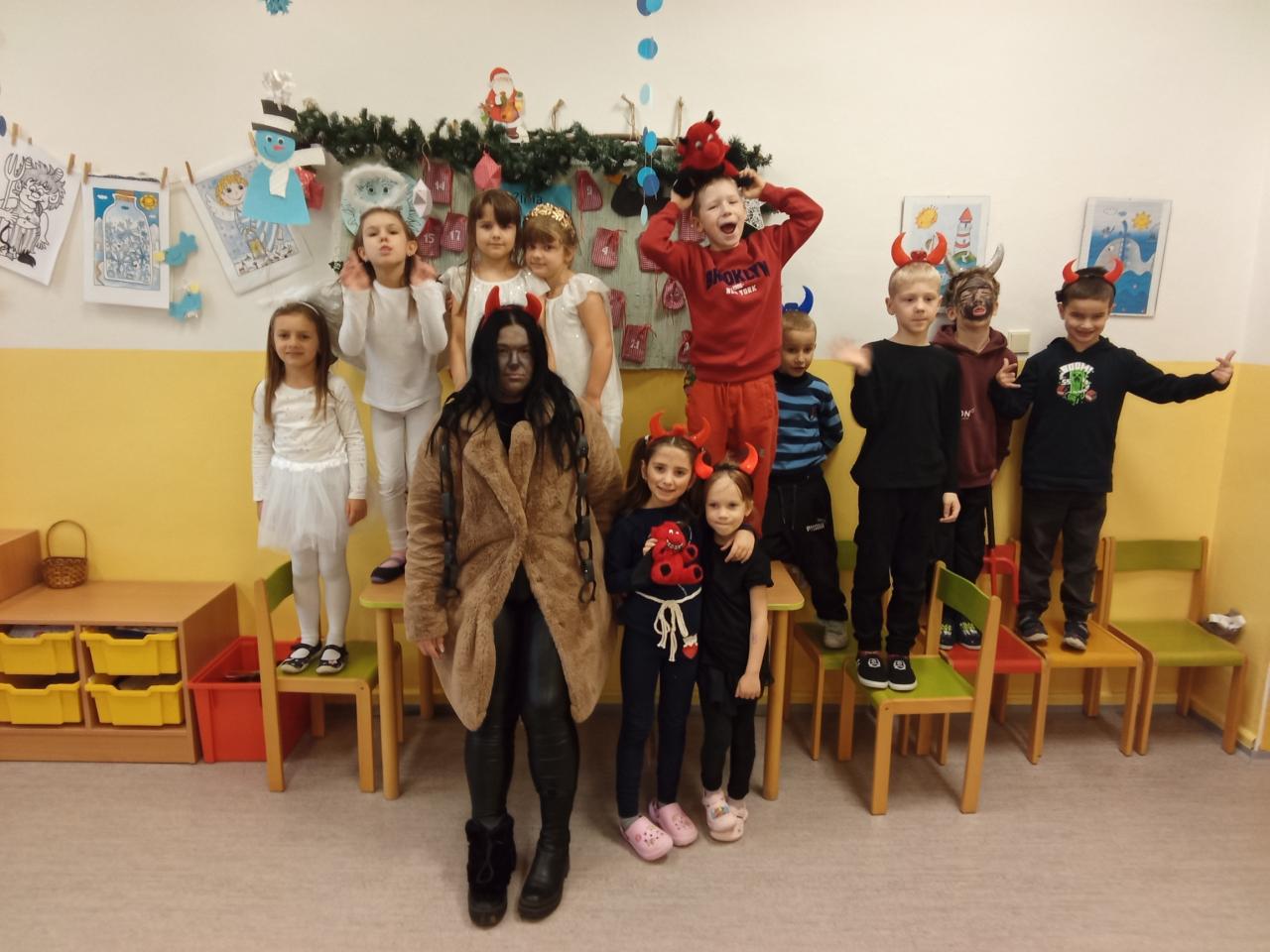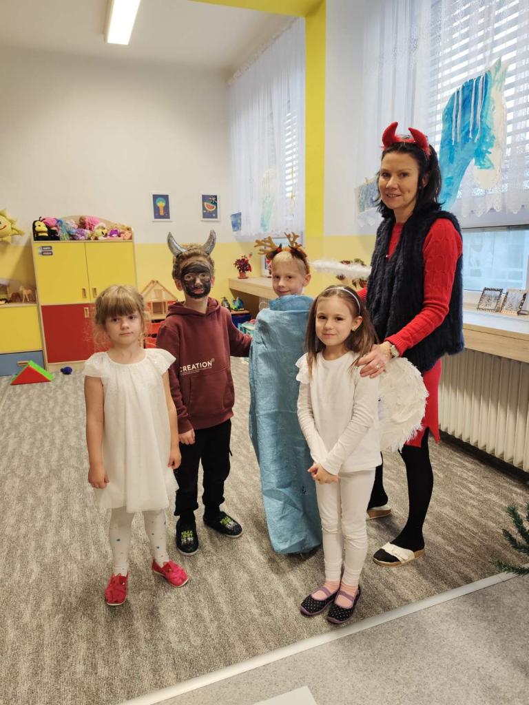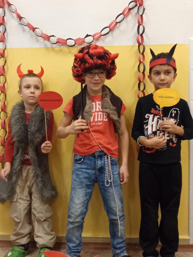 V pátek se školní družina proměnila v malé peklíčko. Už od rána přicházely děti s rohy, umouněnými tvářemi i v čertovských kožíšcích. Aby peklo nebylo přeplněné, dorazili také andílci a víly.