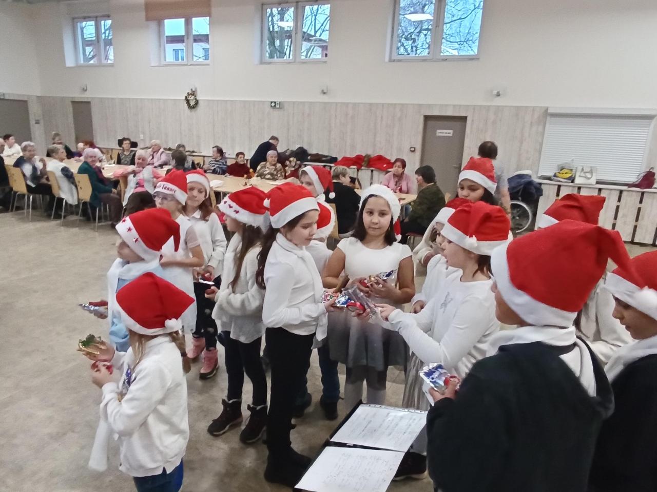 Celé vystoupení se odehrálo v Domově s pečovatelskou službou v Ostravě-Hrabůvce, kde děti přinesly radost a vánoční náladu místním babičkám a dědečkům. Na závěr programu žáci předali seniorům drobné dárky – přáníčko a vánočního skřítka, které vytvořili žáci 2. stupně v hodinách výtvarné výchovy pod vedením paní učitelky Hautové.