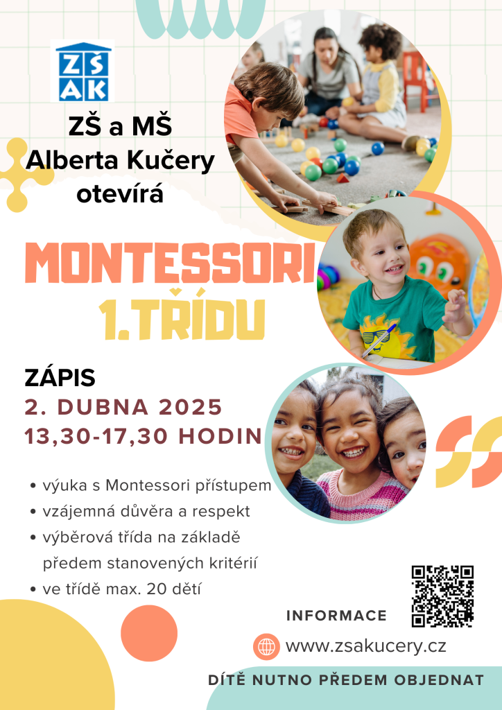 Na základě předem stanovených kritérií bude probíhat přijetí dětí pro nově otevírající se třídu s Montessori výukou.