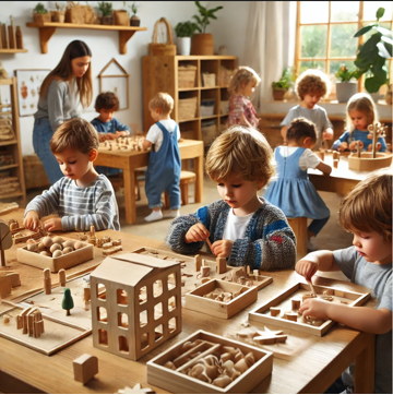 Výuka ve třídě dle Montessori kritérií – pracovní místo, pomůcky, předměty k manipulaci jsou uspořádány tak, aby s nimi dítě mohlo pracovat bez vnější pomoci.