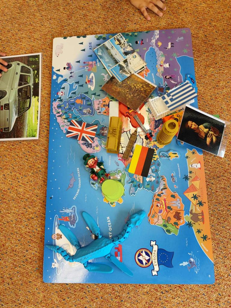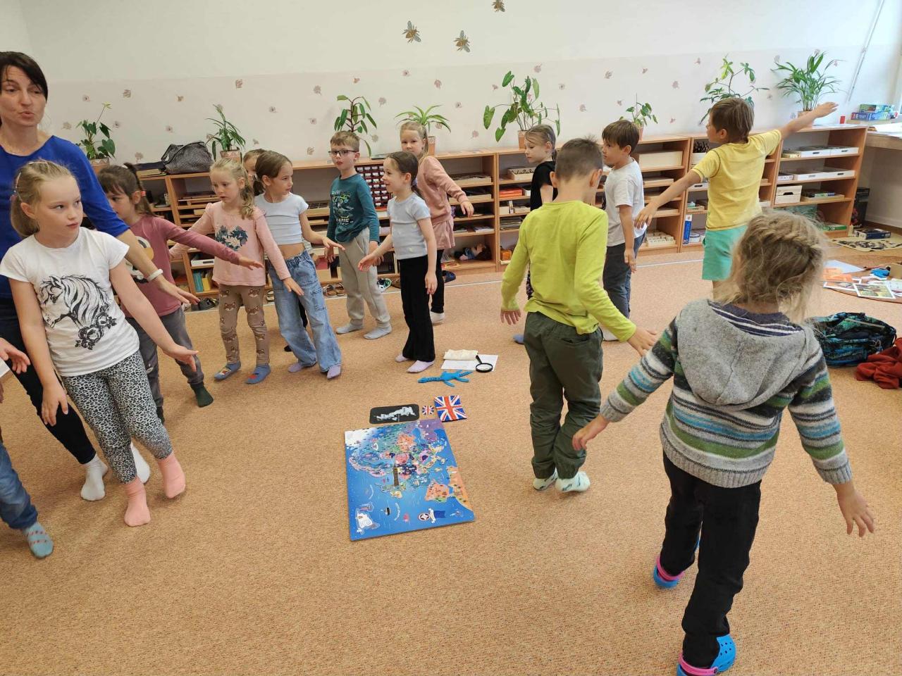 Děti si prohlížely mapu světa a hledaly země, kde se mluví různými jazyky. Poslechly si, jak zní některé z nich, zkoušely jednoduchá slovíčka – třeba pozdravy nebo poděkování – a zkoušely i tance typické pro jednotlivé země. Vyprávěly si také o typických jídlech a památkách jednotlivých států. Velký zájem vzbudila například Šikmá věž v Itálii.