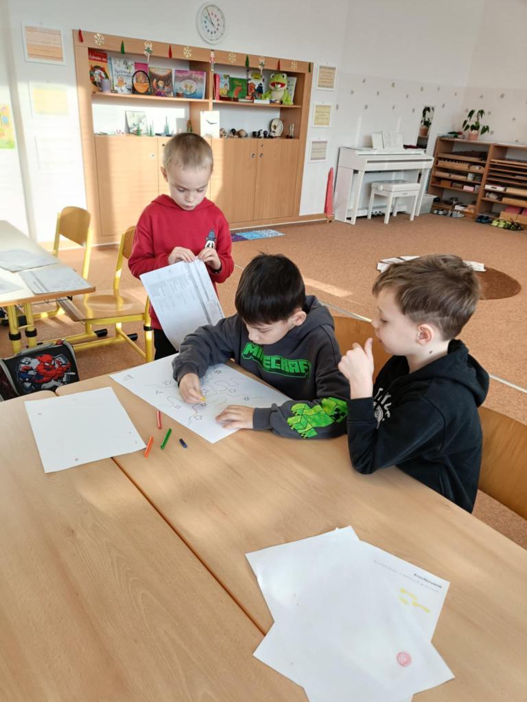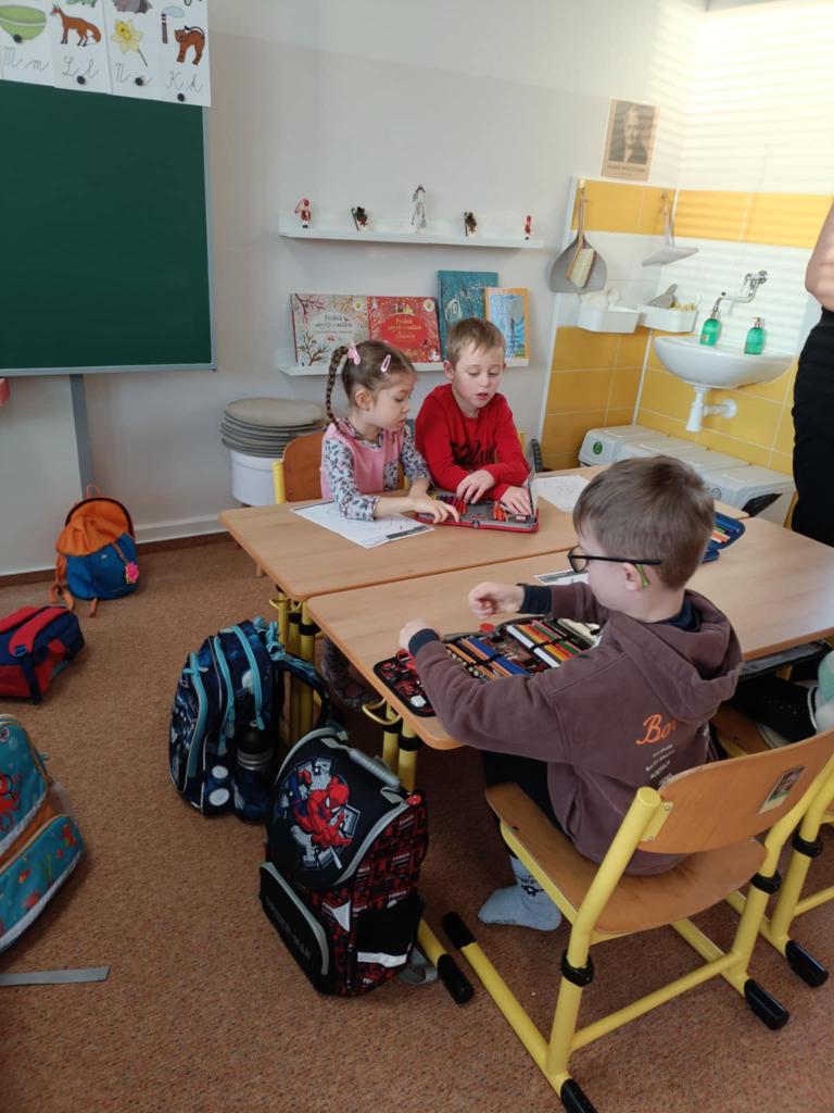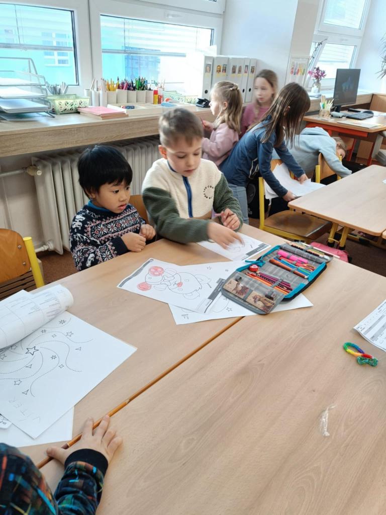 Naši prvňáci jim byli průvodci – ukazovali jim třídu, pomáhali s aktivitami a společně objevovali nové věci. Bylo krásné sledovat, jak si předškoláci užívají školní aktivity a jak si rychle našli nové kamarády.