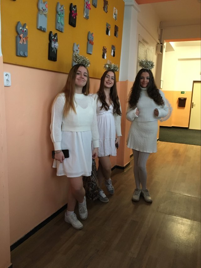 Tuto krásnou tradici u nás oživili deváťáci, kteří se na dva dny proměnili v roztomilé čertíky a laskavé andílky. Společně s Mikulášem navštívili třídy, kde rozdávali dětem sladké dobroty. Čerti sice občas malinko postrašili, ale to spíš jen pro zábavu – u nás totiž jsou jen hodné děti.