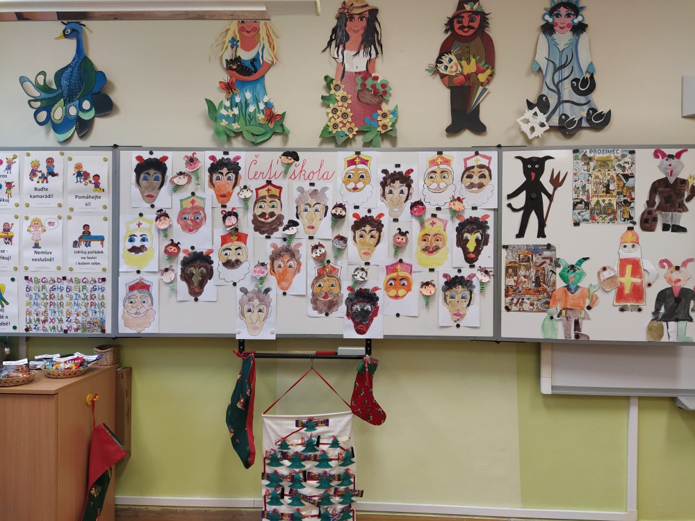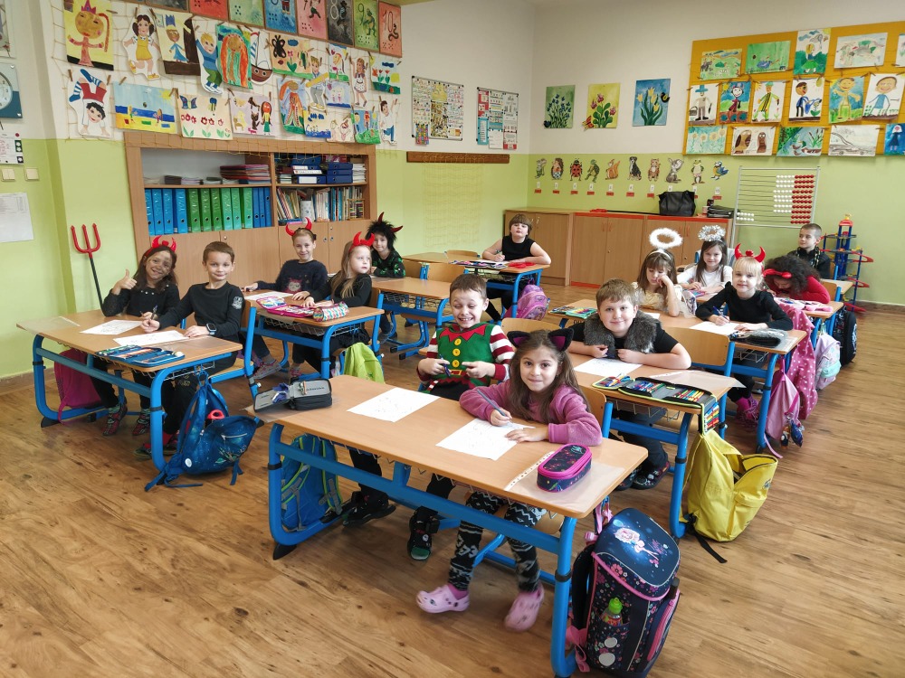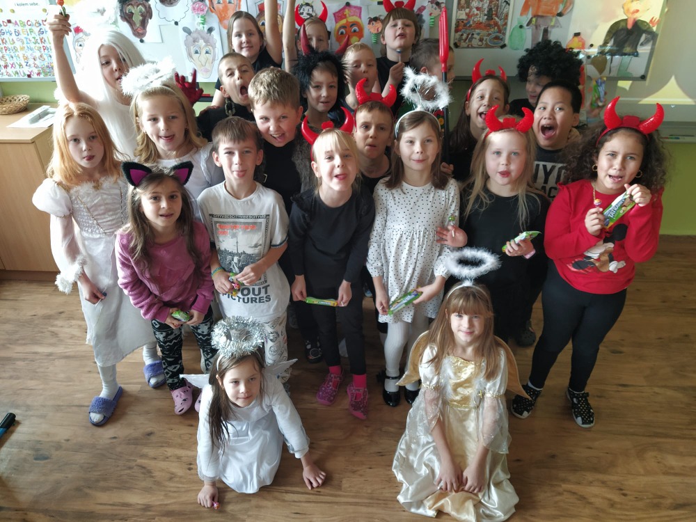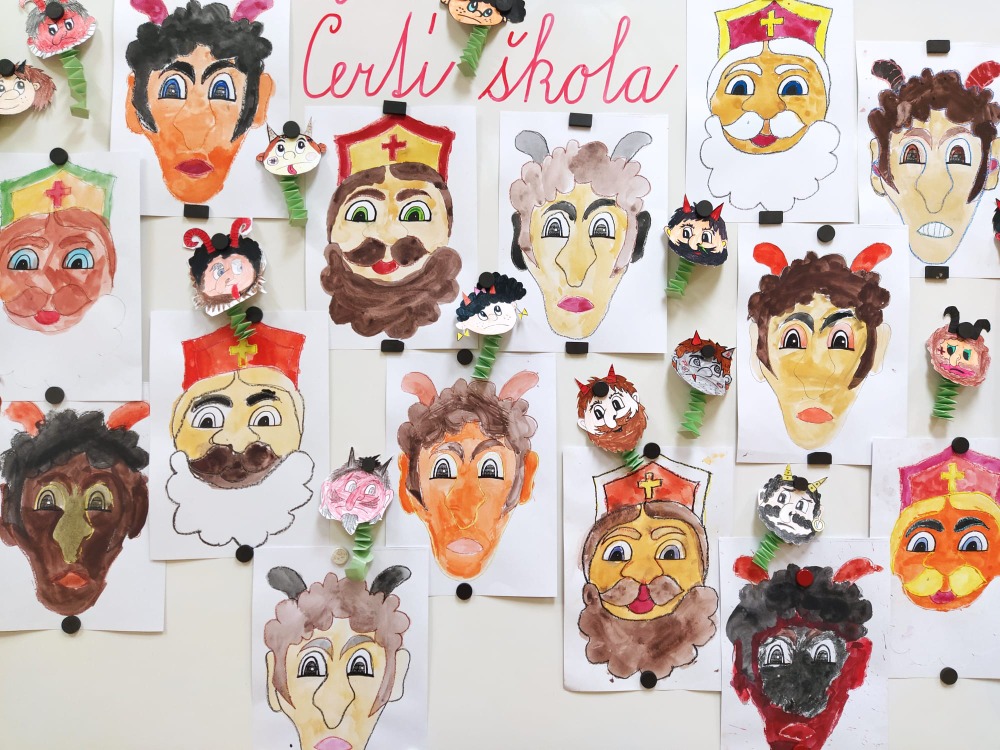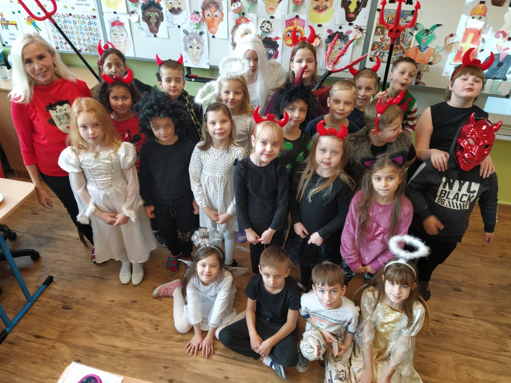 Čas letí jako voda. A je to zase tady. Čas čertů, čertic, pekelníků, andílků i Mikulášů bez nichž si 6. prosinec neumíme představit. Školní třída se opět proměnila v peklo, čerty se to v ní jen hemžilo. Od samého rána bylo slyšet blekotání, huhňání, brblání, samé prapodivné zvuky. Zvoněním ale vše utichlo a čertovské vyučování začalo. Kdo nezlobil a měl čisté svědomí, ten se bát nemusel. Drobotina řešila zapeklité úkoly, četla Luciferovo psaní, odpovídala na záludné otázky, soutěžila, skládala, malovala, prostě netradičně pracovala. Do čertí třídy zavítal také Mikuláš se svými pomocníky. Rohatec řinčel řetězem, dupal kopytem, blekotal jazykem. Hodná čertiska byla pochválena a obdarována, zlobidla musela slíbit, že se polepší. A tak se stalo, že všichni andílci i ti čertíci nakonec ve škole zůstali.