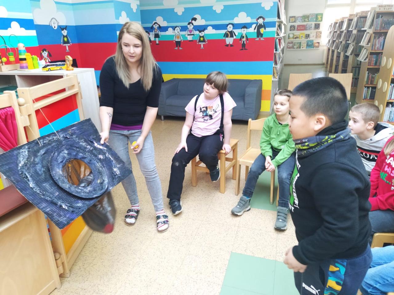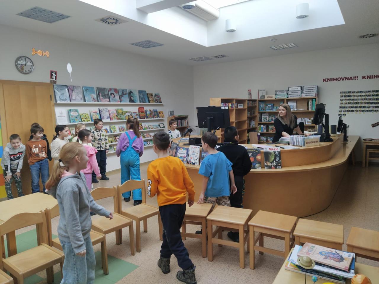 V pátek 21.2.2025 se děti zúčastnily knihovnické besedy. S paní knihovnicí si pomocí příběhu povídaly o vesmíru, sluneční soustavě i o tom, jak to vlastně všechno začalo. Zahrály si interaktivní hru a tancovaly do rytmu hudby. Seznámily se s robůtky, kteří společně s dětmi navštívili vesmír. Robotické hračky rozvíjely logické myšlení, kreativitu a vzbudily zájem o robotiku. V knihách děti využily své čtenářské dovednosti.