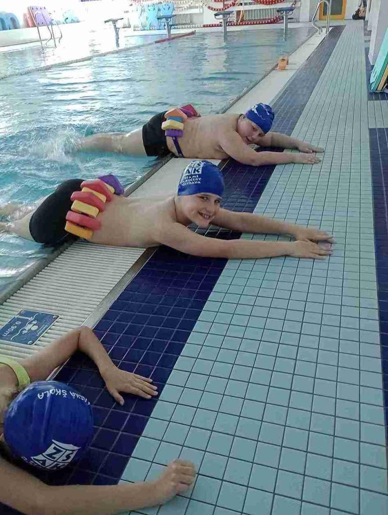 Každé pondělí se naše třída vydává na plaveckou výuku do školního bazénu. Děti se zde pod vedením zkušených a vstřícných instruktorek učí plavat podle svých individuálních možností – někteří se s vodou teprve seznamují, jiní pilují plaveckou techniku a neustále se zlepšují.