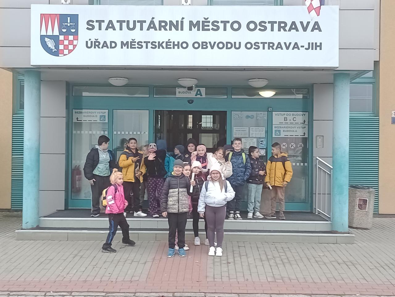 V rámci předmětu prvouka se žáci vypravili na průzkum obce, kde navštívili klíčová místa jako infocentrum na náměstí Ostrava-Jih, obecní úřad s obřadní síní, historickou ulici Jubilejní, památník padlých, biotop a kostel. Děti si v obřadní síni zazpívaly za doprovodu klavíru a dozvěděly se zajímavosti o chodu úřadu i významu navštívených lokalit, což přispělo k jejich lepšímu poznání okolí.