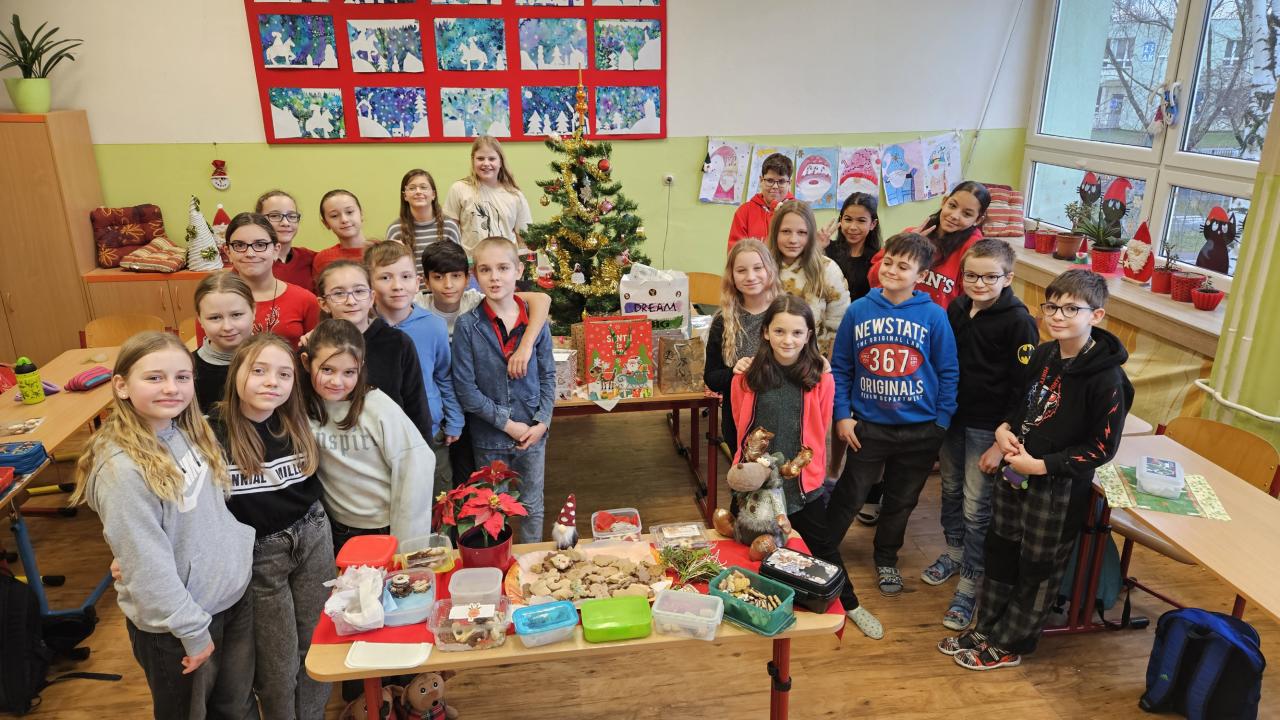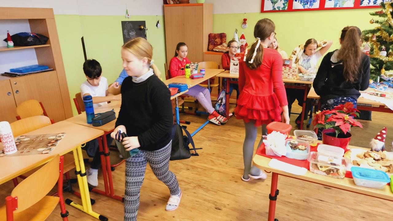Ve třídě 5.B proběhla vánoční besídka. Děti ochutnávaly napečené domácí vánoční cukroví, povídaly si o vánočních tradicích, vyráběly plovoucí svíčky, které následně pouštěly a se zaujetím pozorovaly, holky zkoušely házet střevícem ke dveřím. Paní učitelka rozkrojila jablko, ve kterém na všechny čekala hvězdička. Příchod Ježíška oznámil zvoneček a následovalo dlouho očekávané rozdávání dárečků, které všem vytvořilo úsměv na rtu. V poslední hodině všichni prověřili své znalosti z vánočních pohádek ve hře Kahoot! Atmosféra byla opravdu kouzelná a o zábavu nebyla nouze.