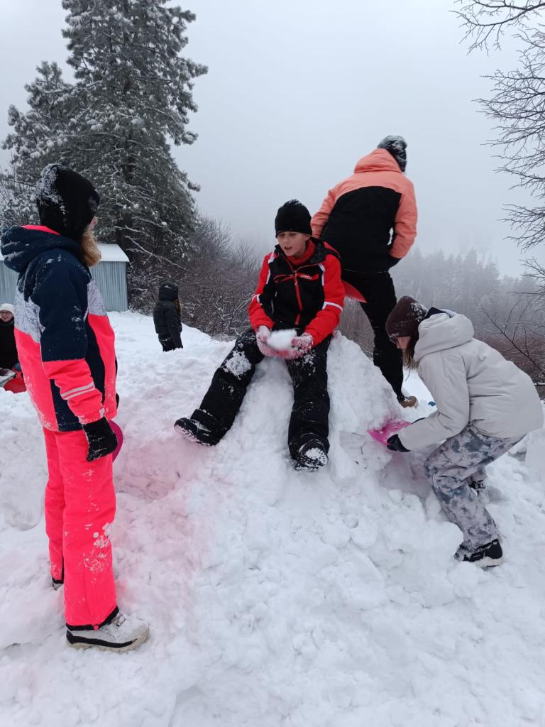 Děti si užívaly bohatý program, hrali různé hry, objevovali krásy okolní přírody a samozřejmě se učili i lyžovat 😉. I když na začátku sníh pokrýval pouze část sjezdovky a okolí spíš připomínalo jaro = podmínky nebyly zrovna ideální, díky nové sněhové nadílce a obrovské chuti a vytrvalosti získaly lyžařské aktivity velkou oblibu.