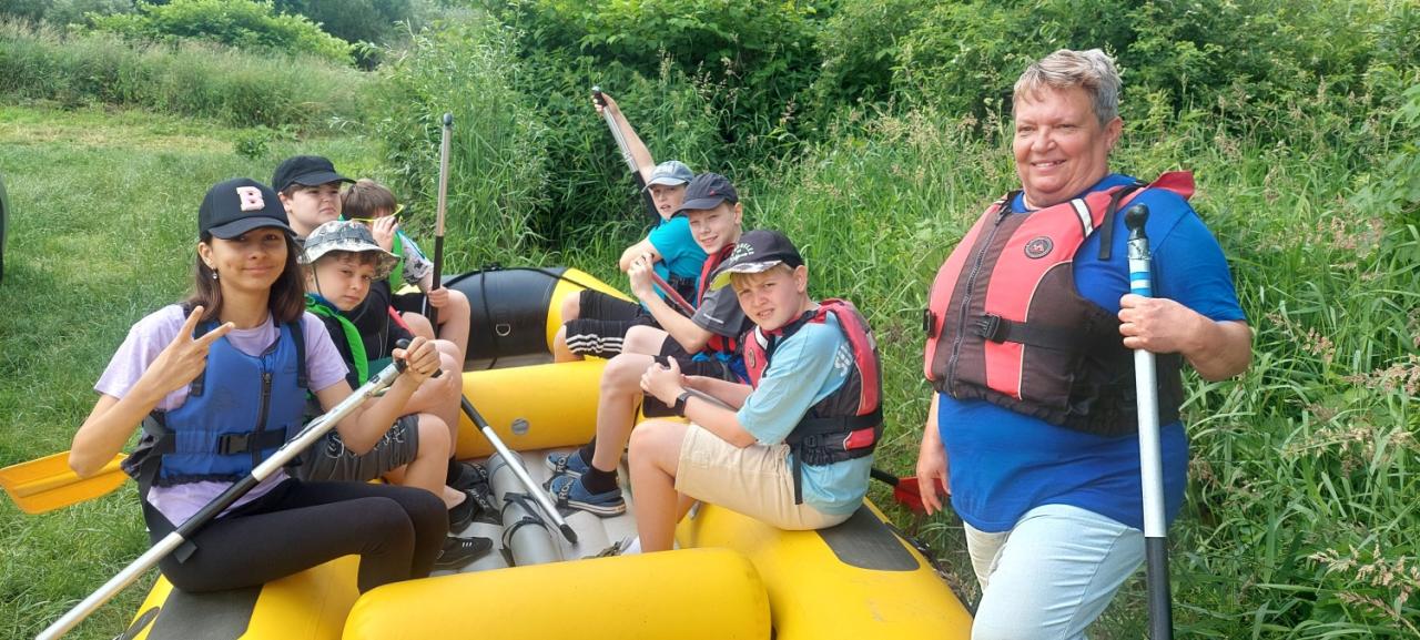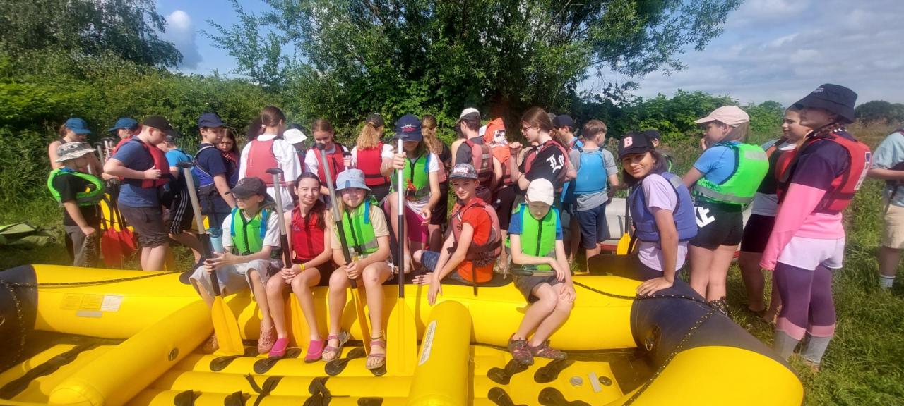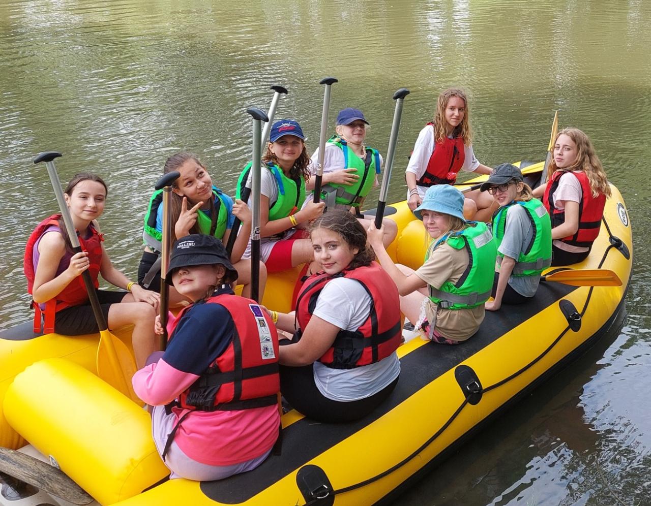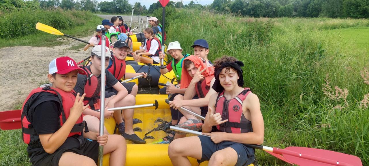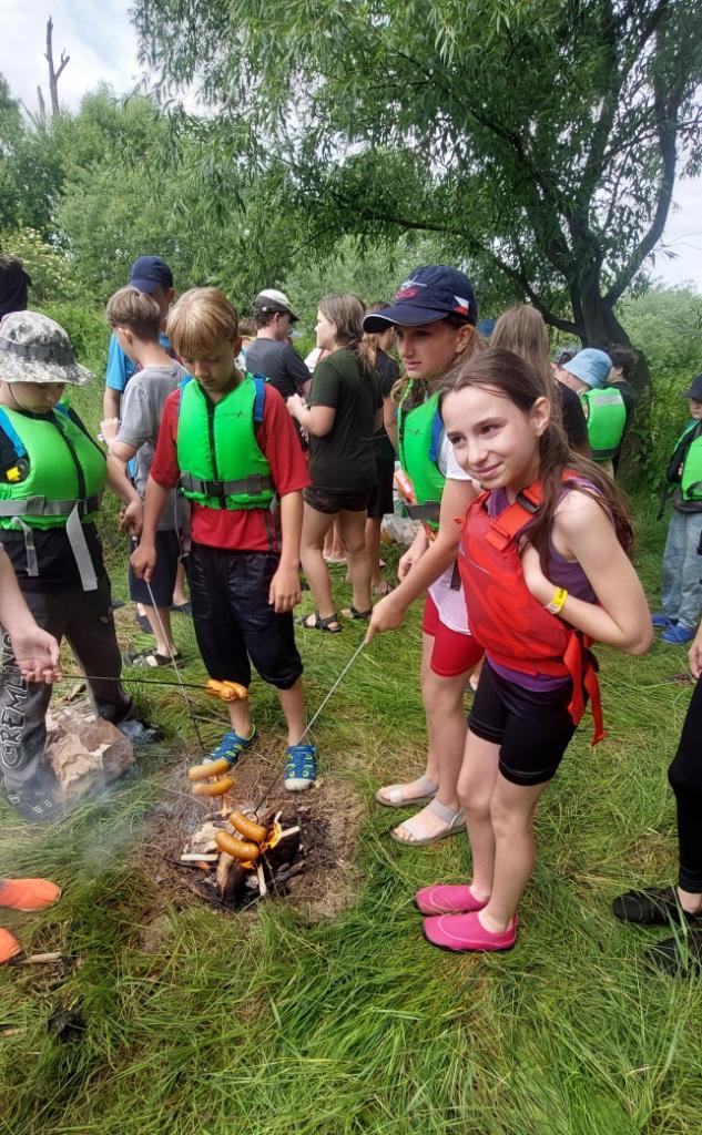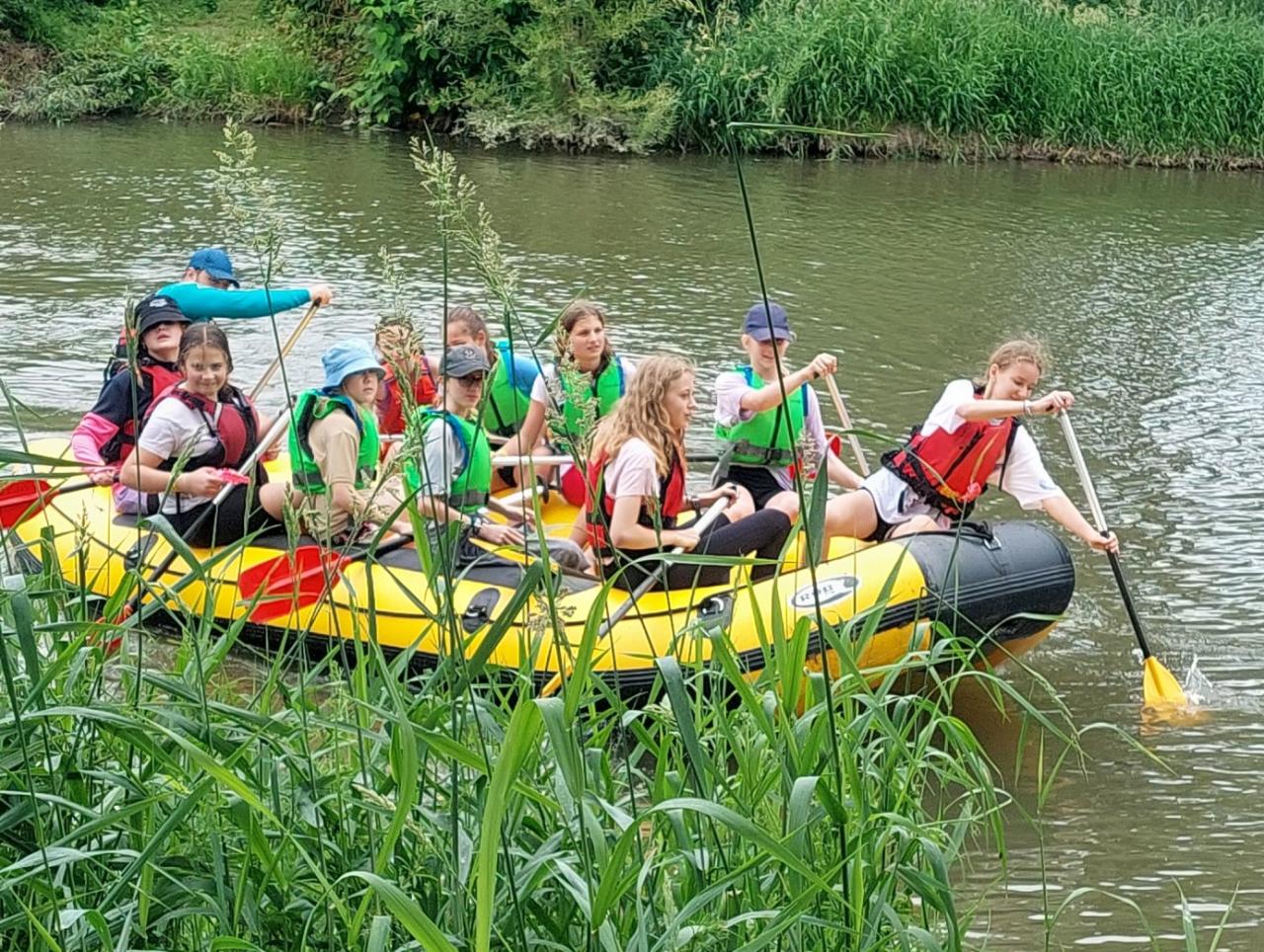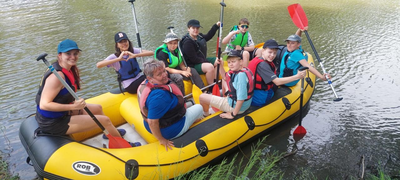 Dne 11.6. jsme ráno vyrazili do Háje ve Slezsku. Tam jsme byli proškoleni, jak se drží pádlo a správně pádluje, dodržuje bezpečnost a sjíždí klidná řeka. Užili jsme si opékání buřtů, hry na raftu, koupání ve vodě a šťastně jsme dopluli do cíle v Jilešovicích. Super den i zážitky.