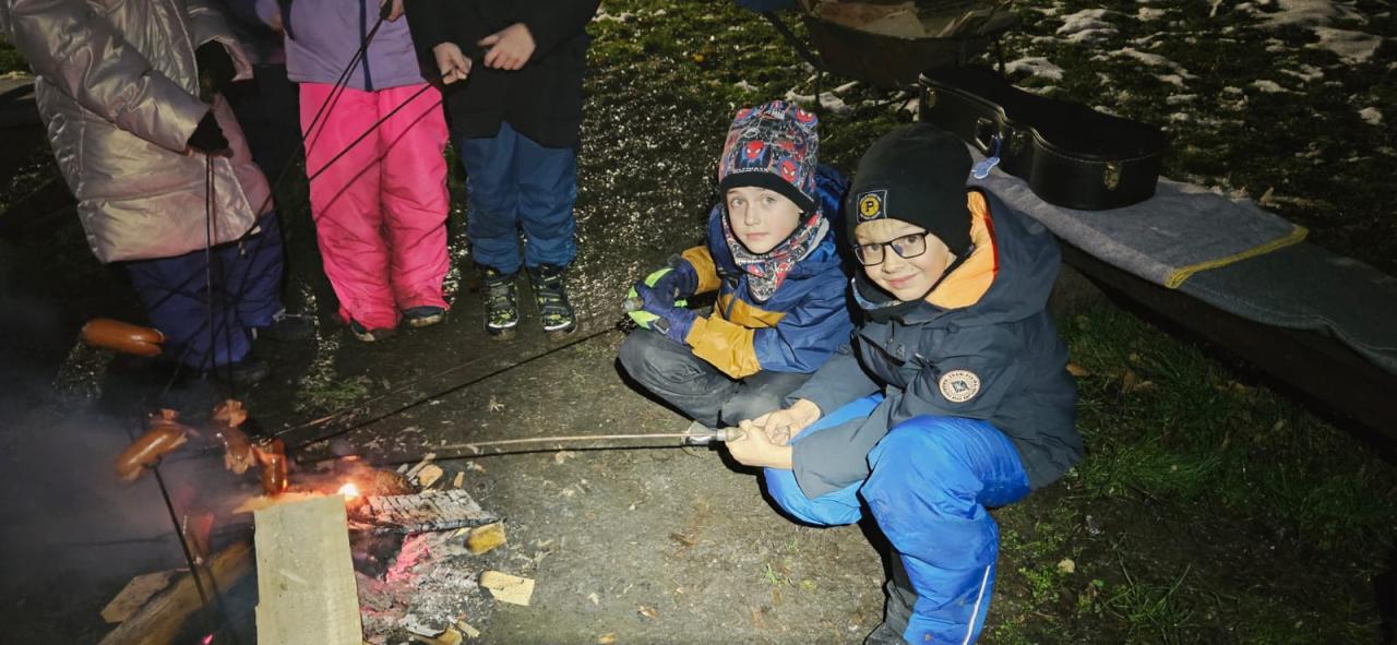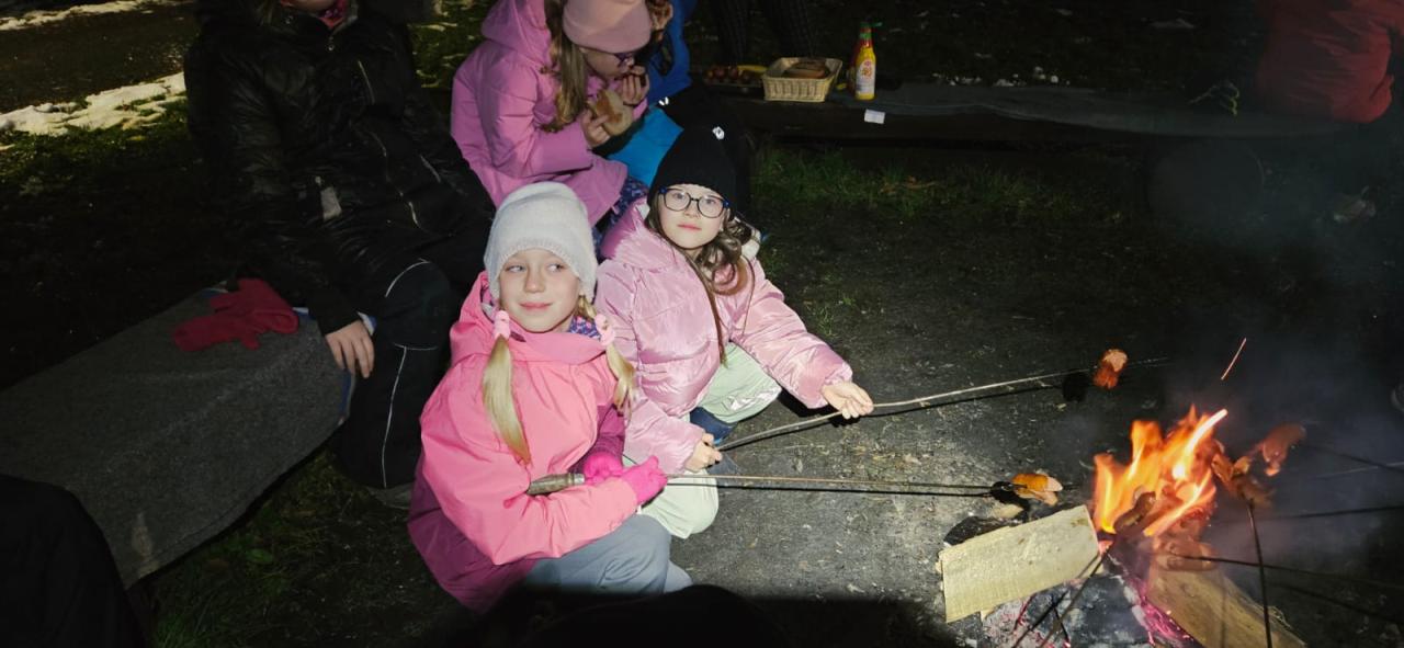 Po obědě jsme se pustili do tvoření a následně nás čekalo něco opravdu netradičního – opékání špekáčků v prosinci! Pro většinu dětí to byl zcela nový zážitek, protože málokdo z nich kdy opékal v takto chladném období, a už vůbec ne se zbytky sněhu kolem sebe. Atmosféra byla kouzelná, voňavá a plná radosti.