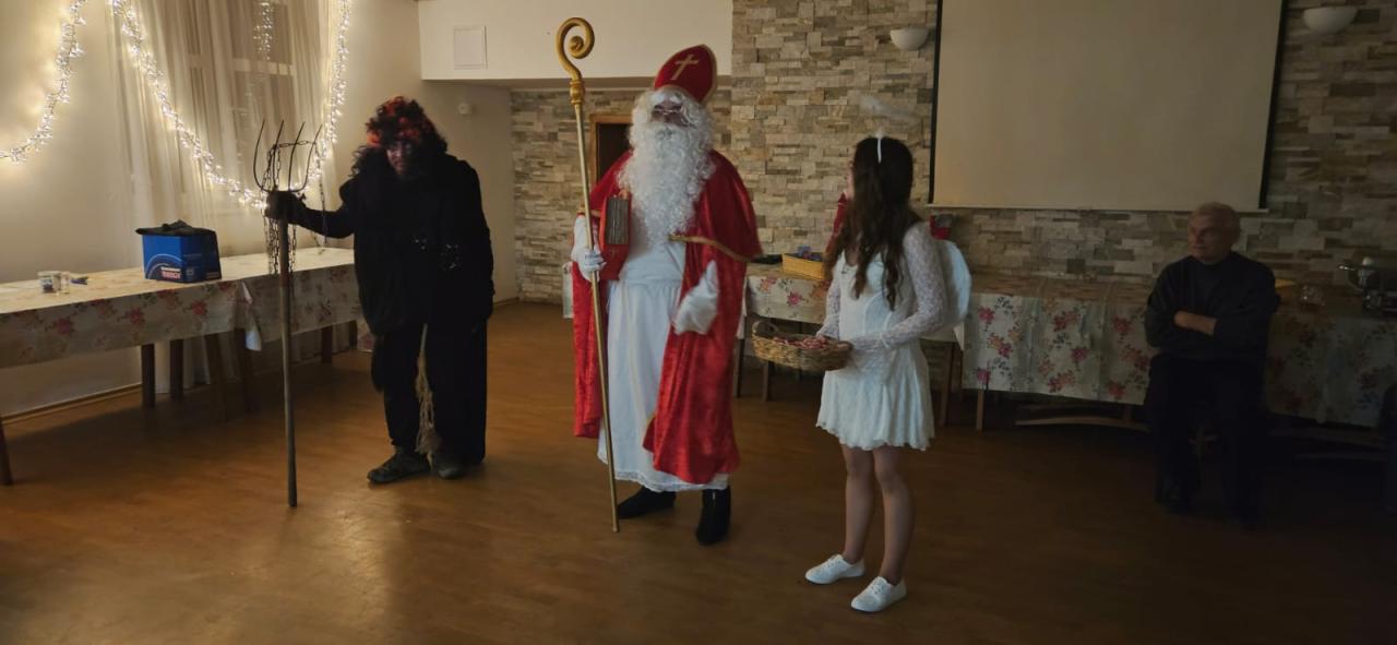 Po setmění nás totiž navštívil Mikuláš se svou sladkou nadílkou. S dětmi si popovídal o tom, v čem vynikají, na čem mohou zapracovat, a každému předal sladkou odměnu. Setkání bylo milé, veselé a krásně navodilo mikulášskou atmosféru.