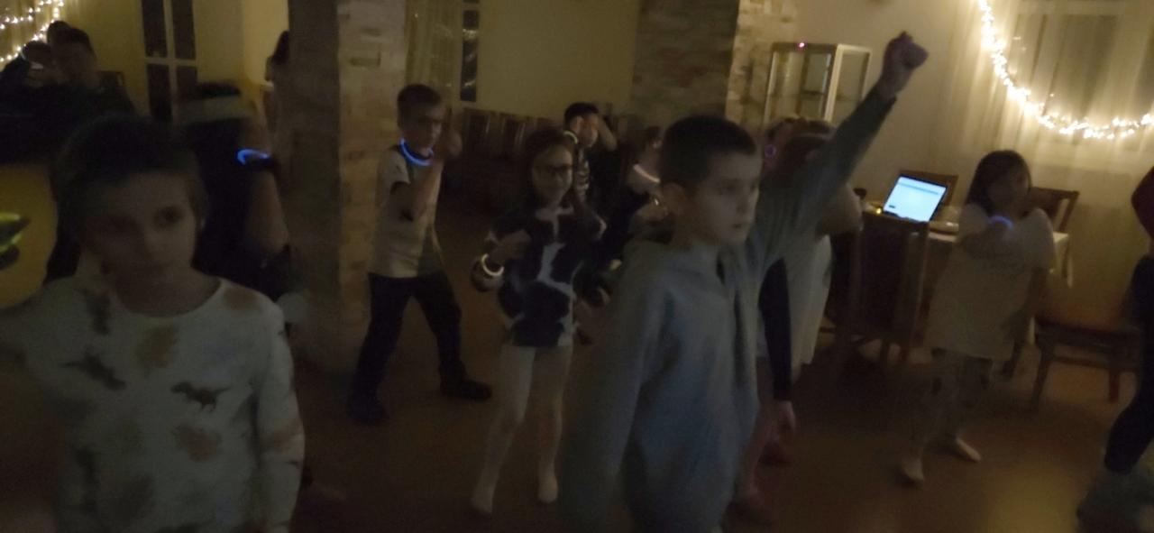 A tím večer rozhodně nekončil! Po “bombardické” večeři v podobě pizzy jsme se všichni vrhli na velkolepou závěrečnou party s Just Dance. Děti tančily, smály se a užívaly si poslední společné chvíle naplno.