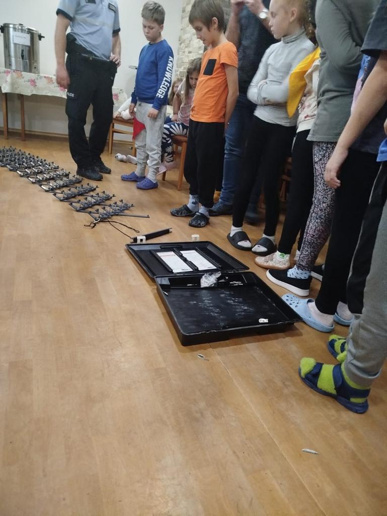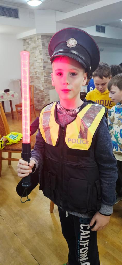 Odpolední program pokračoval velmi zajímavou besedou s Policií České republiky. Děti měly možnost vyzkoušet si různé policejní pomůcky, prohlédnout si vybavení a dozvědět se mnoho užitečných informací o bezpečnosti i práci policistů. Nadšení bylo obrovské!