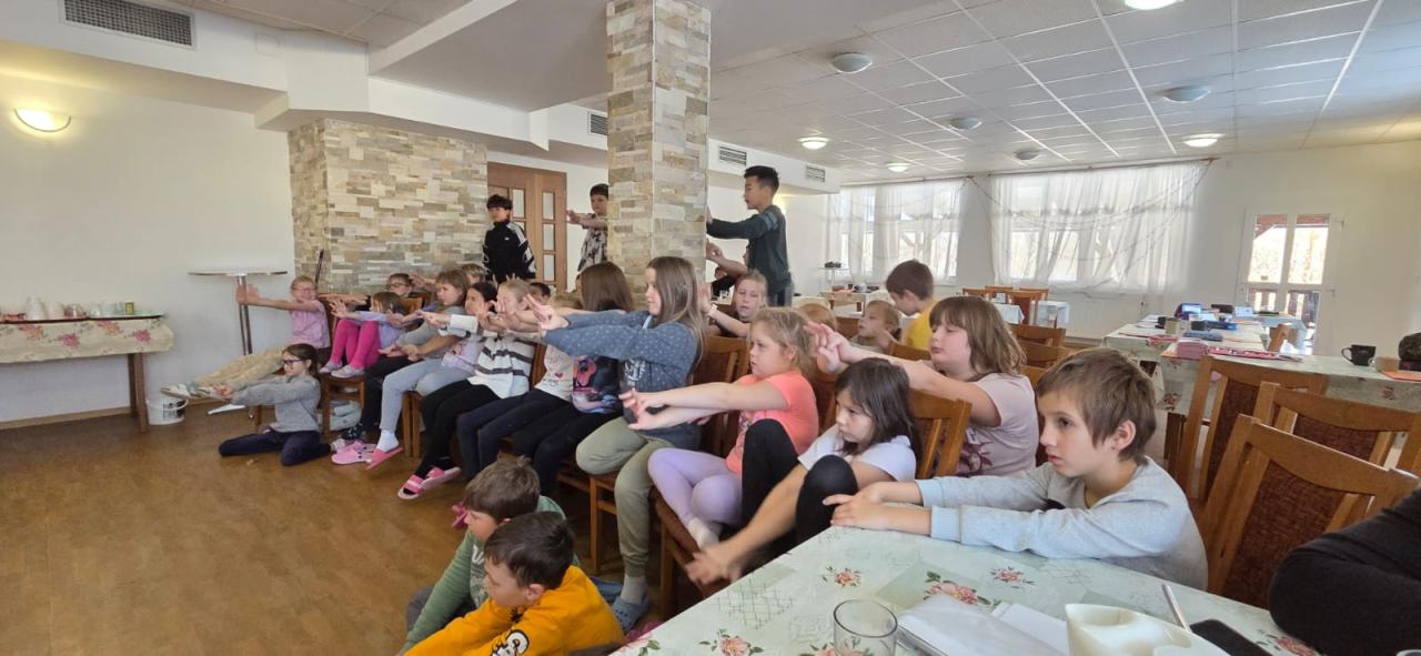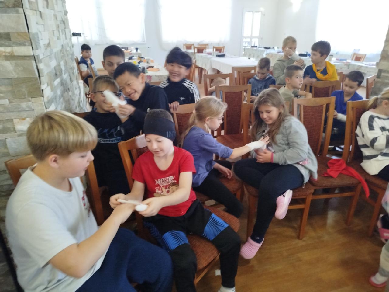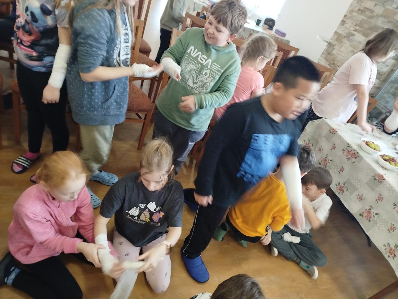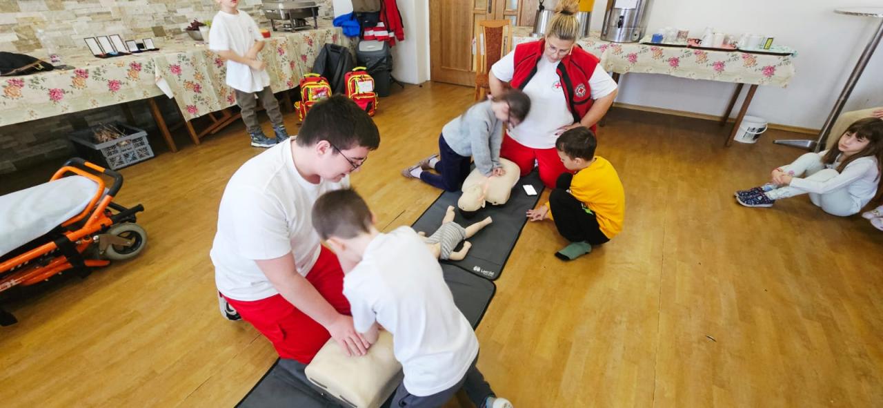 Po vydatné snídani čekal na děti opravdu nabitý program. Hned ráno jsme zahájili den přednáškou Českého červeného kříže, která byla nejen poučná, ale také velmi praktická. Žáci si vyzkoušeli, jak správně poskytnout první pomoc a jak postupovat v situaci, kdy potkají zraněného člověka. Největší zážitek však přišel ve chvíli, kdy si každý mohl na vlastní kůži vyzkoušet, jaké to je být naložený na nosítka rychlé záchranné služby. Pro některé to byl opravdu jedinečný a nezapomenutelný okamžik.