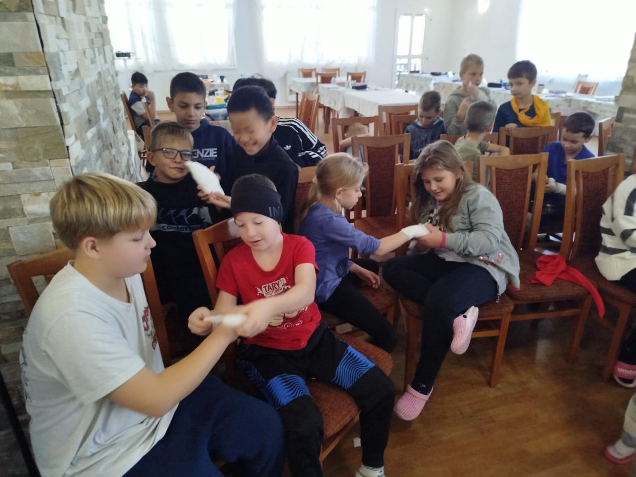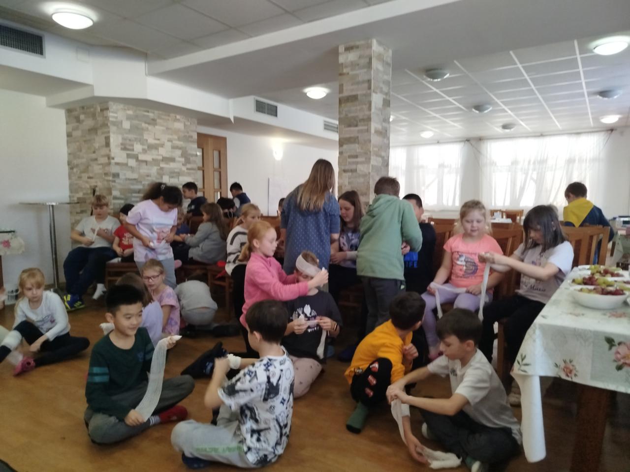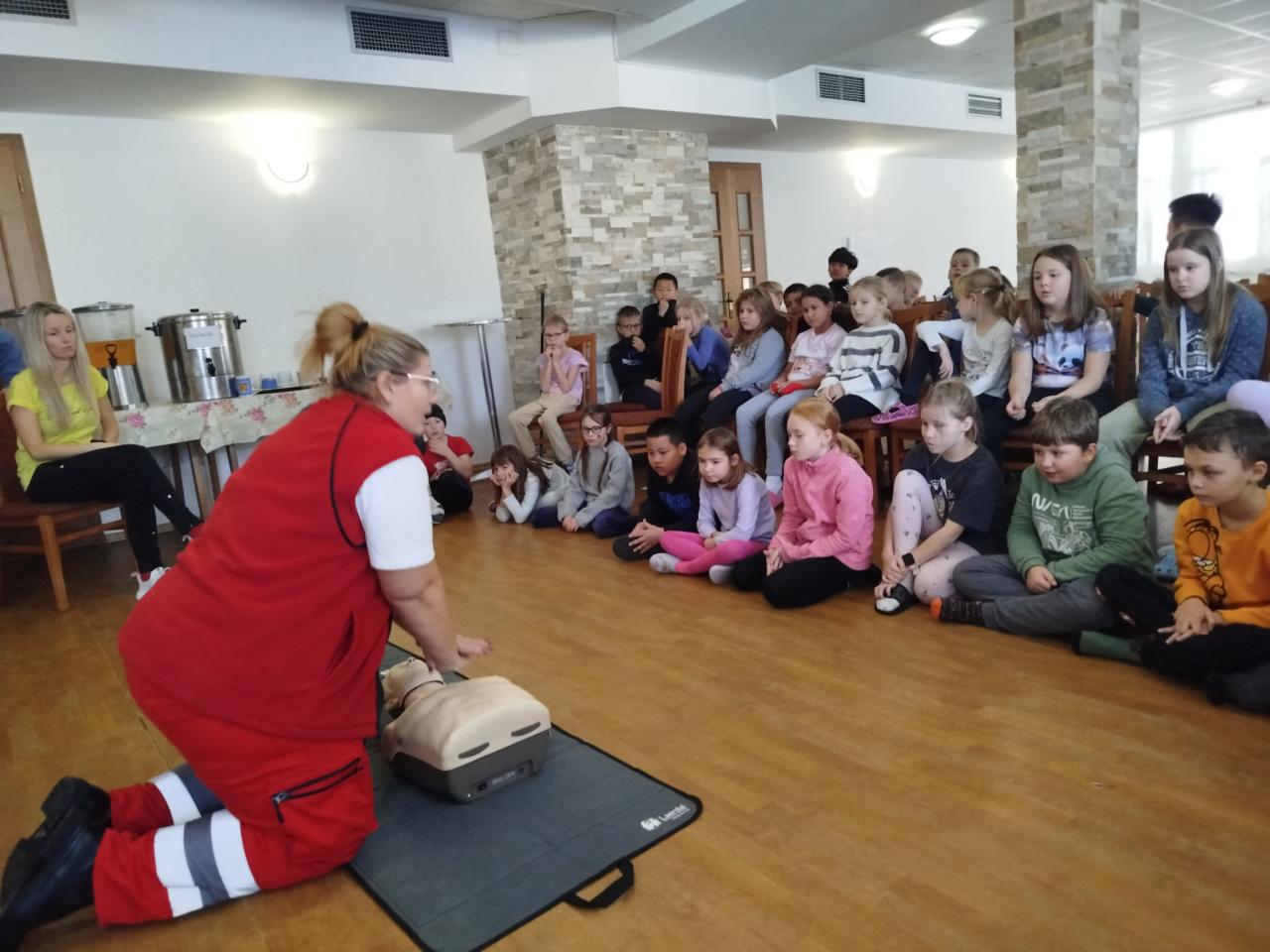 Po vydatné snídani čekal na děti opravdu nabitý program. Hned ráno jsme zahájili den přednáškou Českého červeného kříže, která byla nejen poučná, ale také velmi praktická. Žáci si vyzkoušeli, jak správně poskytnout první pomoc a jak postupovat v situaci, kdy potkají zraněného člověka. Největší zážitek však přišel ve chvíli, kdy si každý mohl na vlastní kůži vyzkoušet, jaké to je být naložený na nosítka rychlé záchranné služby. Pro některé to byl opravdu jedinečný a nezapomenutelný okamžik.